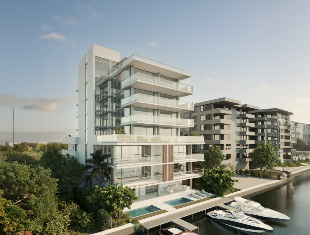 Set just a few blocks inland at 9950 East Bay Harbor Drive, Aire Residences Boutique introduces a more intimate offering of only eight units. These three- and four-bedroom homes, starting at 1,400 square feet and priced from $1.8 million, offer luxury living with thoughtful design and an emphasis on livability over excess. Remarkably, 60% of the residences are already under contract, nine months before breaking ground.